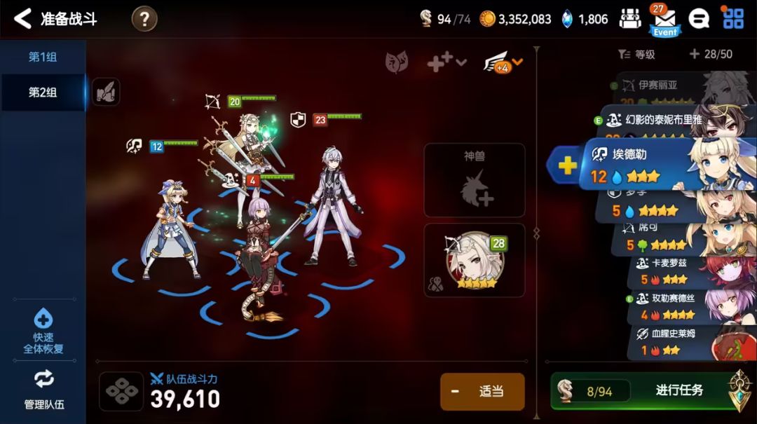 在这之后,我们随着主线的推进,还会获得3星角色艾德勒(小王子)与4星角色玫勒赛德丝(女主)。有了他们,再加上拉斯(男主)与筛选召唤获取的伊赛利亚(木飞剑),我们便可以轻松打完1-1-10。