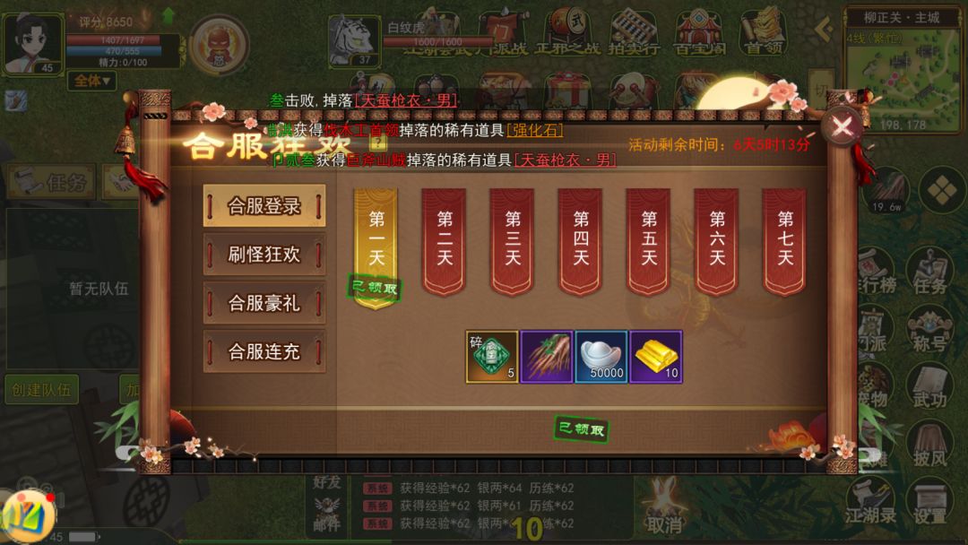 第二、合服后会出现一个合服狂欢、每天登陆或者每天充值都会领取到银币金条等需要用到的一些材料
