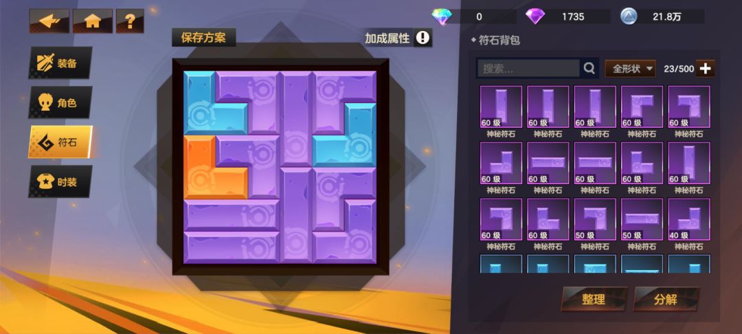 冒险者需要根据符石形状和属性合理地安排插槽,提升所需的属性,进而增强角色的综合战力。