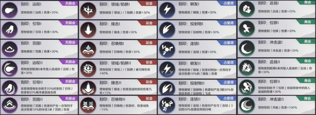 在势力刻印玩法中,通过提升对应势力的声望等级,可以解锁相应的专属刻印。冒险者可以从专属刻印和进入异界即可解锁的通用刻印中自由选择搭配,为自己的异界探索助力。