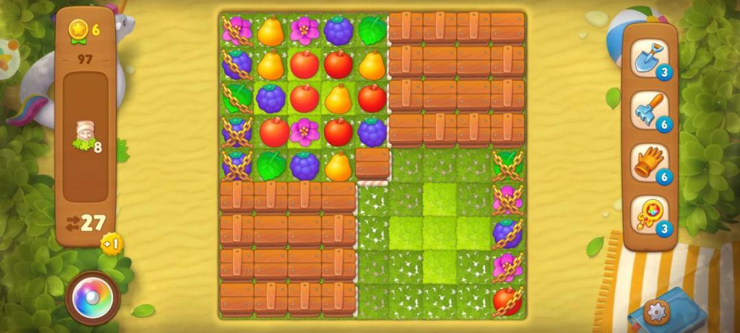 4. 右上方的箱子,清理掉以后,可以让元素尽快融入到最右边以便配对消除,可以尽快收集小矮人。
