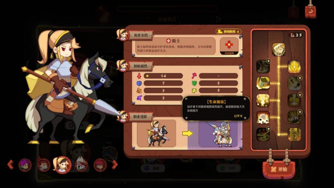 新人在游戏开始可以选择一个初始勇者,在九个勇者中我建议选择一个DPS,最好还是射手,因为射手的攻击距离能够确保前中期的近战怪中能够白嫖第一波输出,要知道在战棋游戏中攻击距离会很大程度决定战斗的胜负,尤其是在《勇者之书》的规则中。当然,虽说牧师也是远程,但是如果你选择她的话,个人觉得挺过前两关到招募新勇者都会非常麻烦。。。