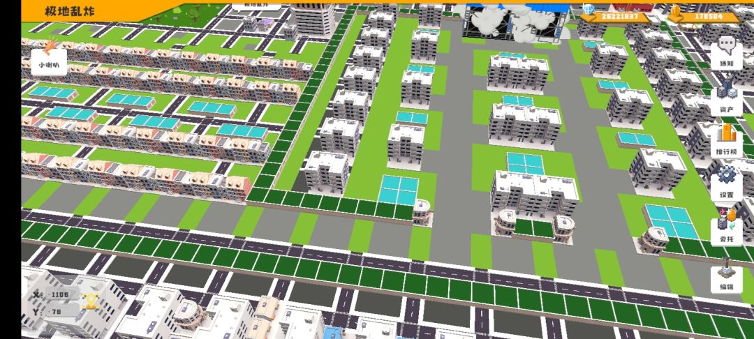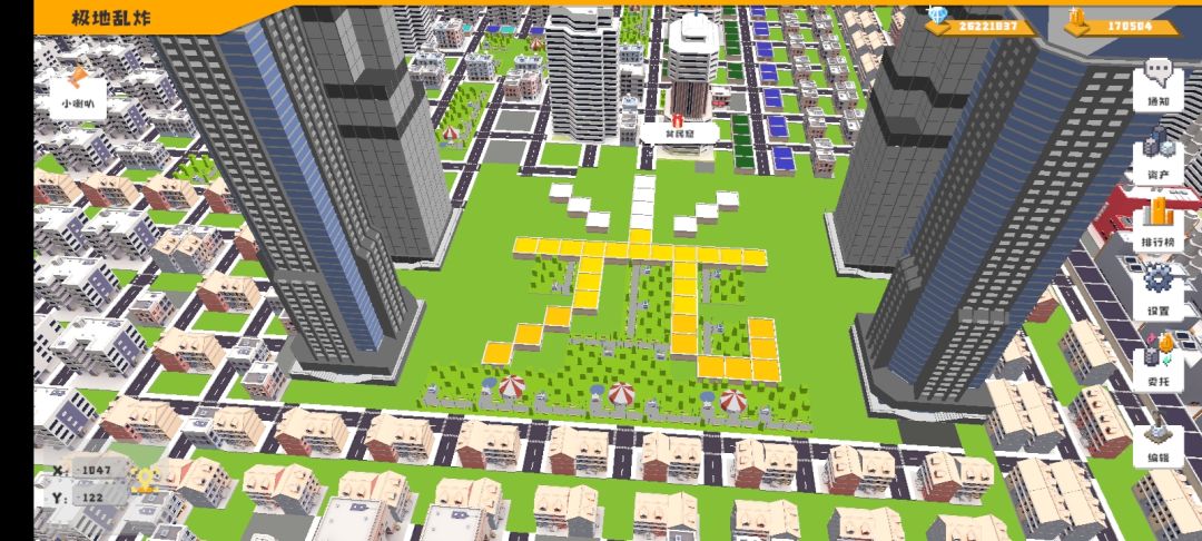在大批量建筑的同时,休闲玩家可以尝试使用草地与有色方块增加城市绿化(只是好看,无实际用途,冲榜的请回避)