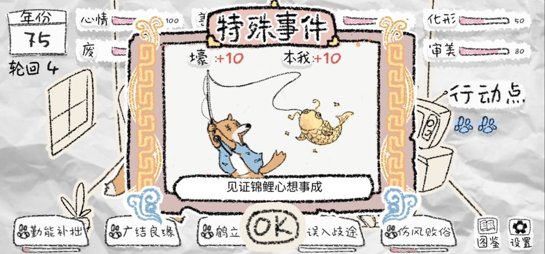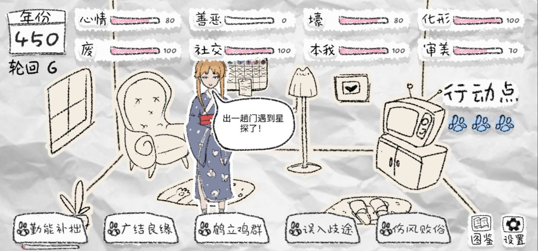 第四,有时不需要太多的点数比如壕和善良可以先不用管他,不刷形象的情况下升一些也无所谓,后期用技能降社交降化形的时候会自己费完的。