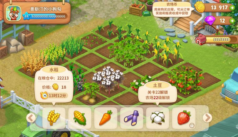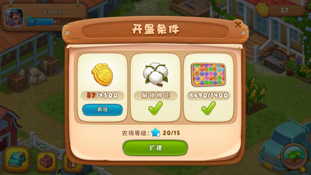 答:农场需要在花园中闯关超过60关并且完成树屋区域才会开启,开启后点击下方一个“菜篮子”形状按钮可以进入。