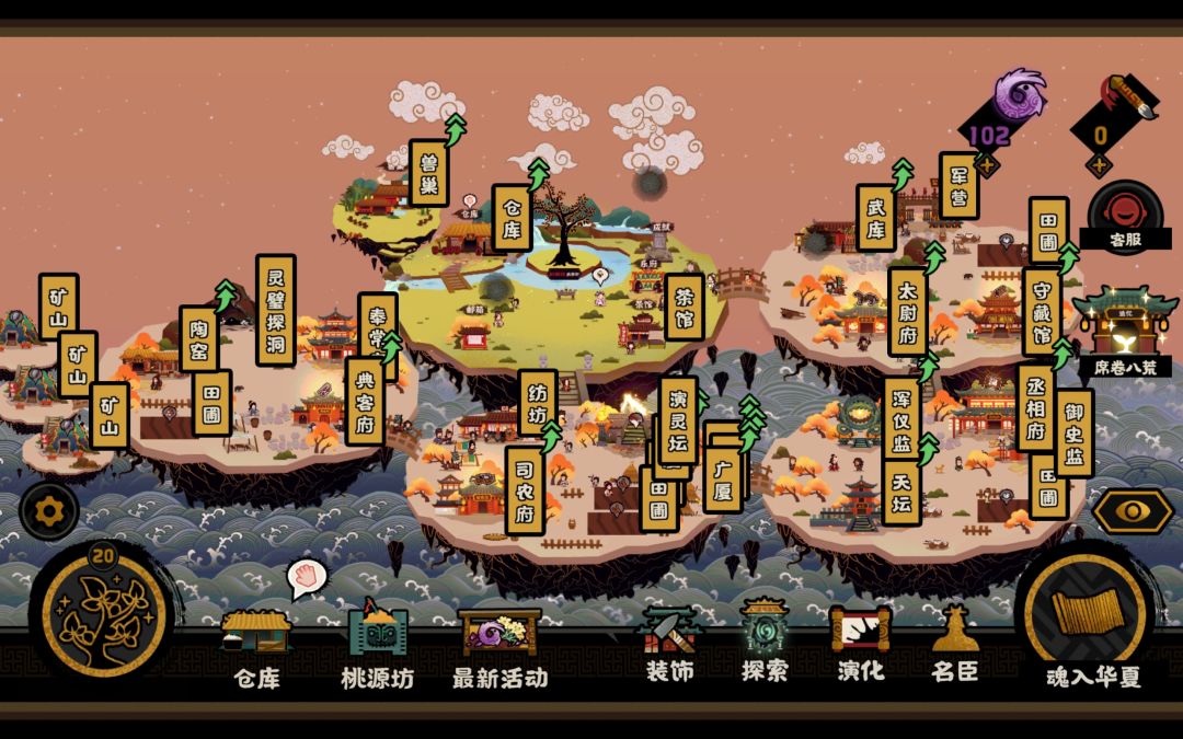 家园的话,前期非常缺资源,除了田、矿、纹石、笔,都几乎没升级,那个生产布和鼎的,是为了笔最近升的。