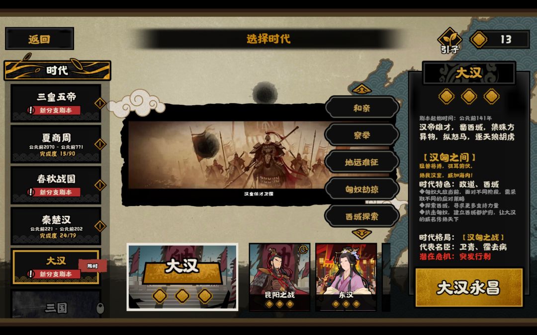 前两天刚把大汉打完,打的是汉匈相融,好打且有很多技巧,可惜没有王昭君。