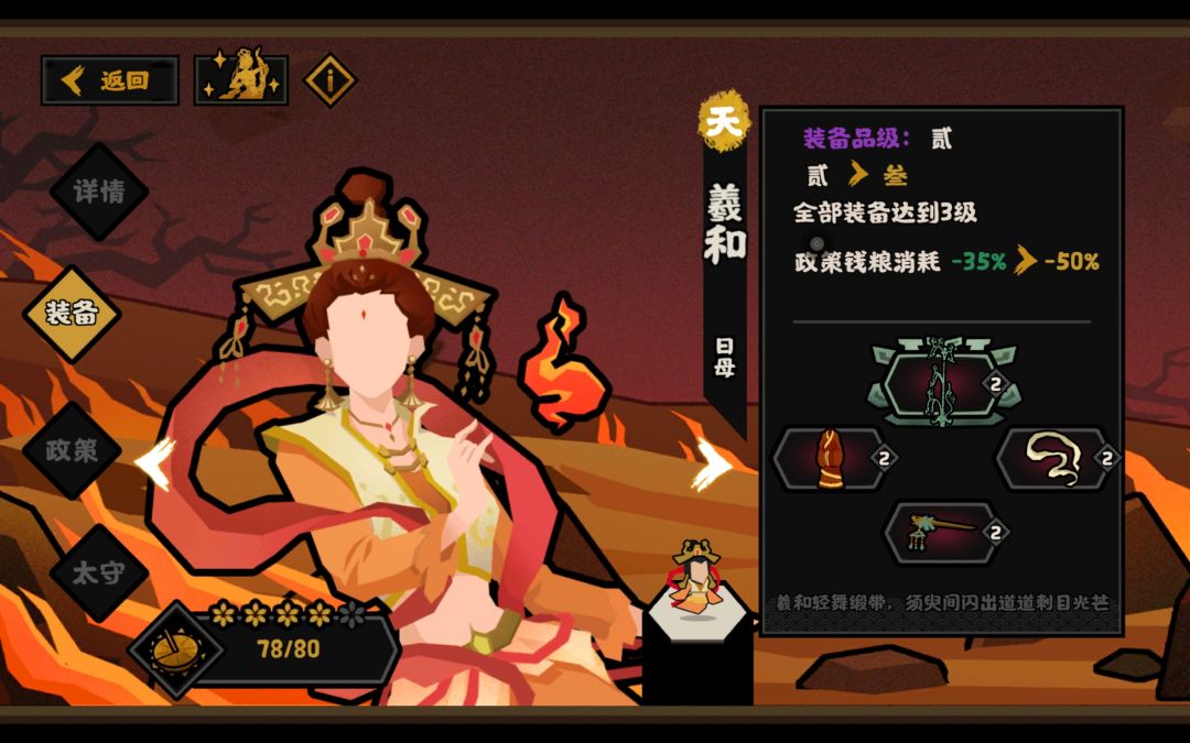 很幸运,玩游戏第二天刷到了一个新名臣培养六步走的视频,就开始刷羲和,羲和非常好刷,当时想着肝一点,再来两天搞定,结果发现每天碎片最多三次,后来发现席卷,以为是打困难模式的额外奖励,然后第一次打困难,结果是省肝的扫荡功能,当时心情很差,羲和就™差4个碎片,我不需要省肝……