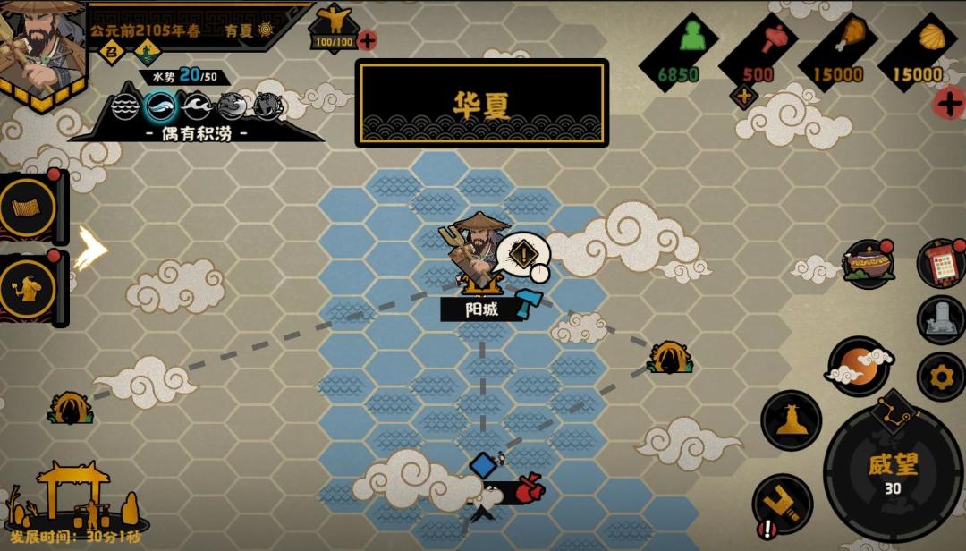 新手引导跳过了,以我玩游戏的经验看来,玩着玩着就会了,引导不重要……两个字,后悔。三皇五帝勉强拿下,夏商周更是打了将近一整天,第一次还只有两颗星。