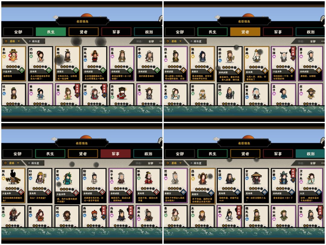 7.庄比队,属于几乎全剧本全难度通用,不过挂机流不好玩。吴起配合比干低腐化,周公配合庄子高民心,顺便某些情况提升威望,属于拆了商吴、孔周两个强度组合拿来用。