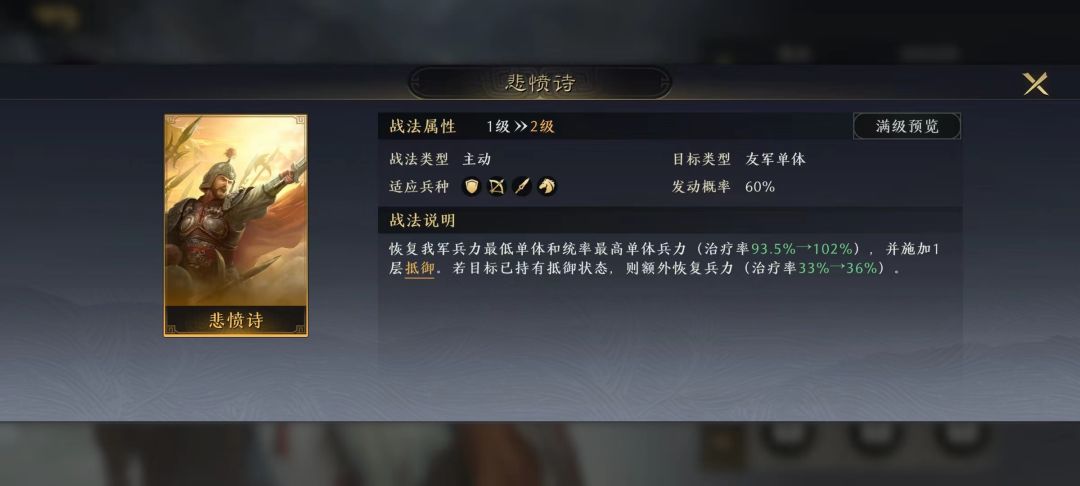 尤其当队伍缺少披坚执锐等生存类战法时,带个陈到作为勉为其难的选择,还是不错的。