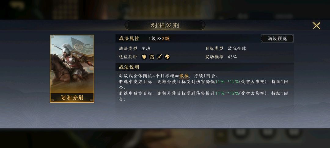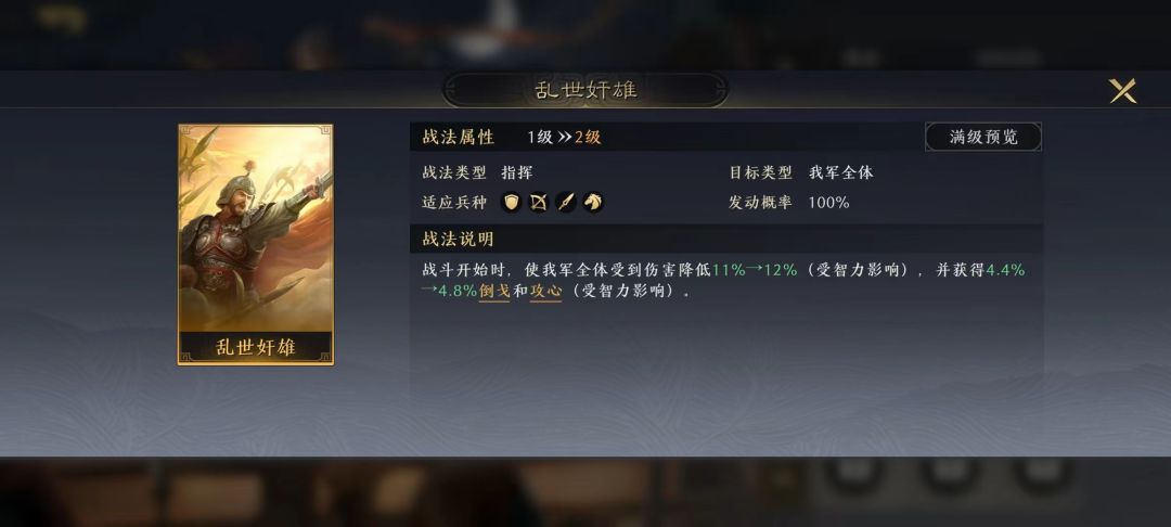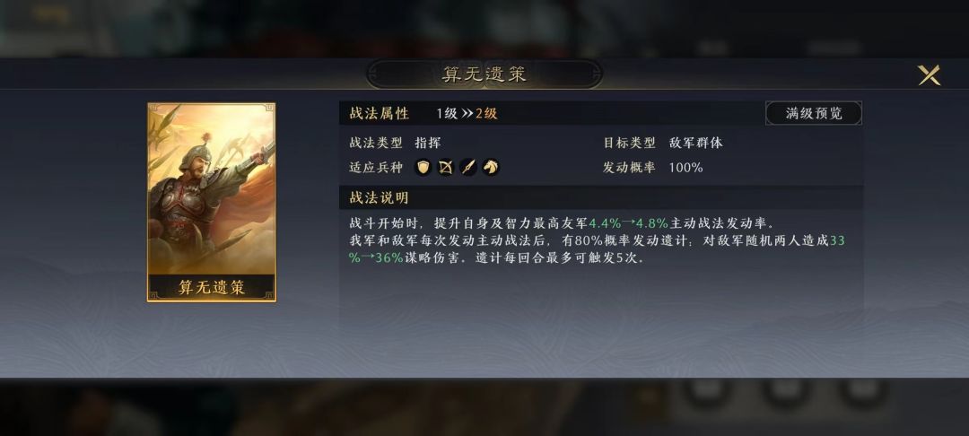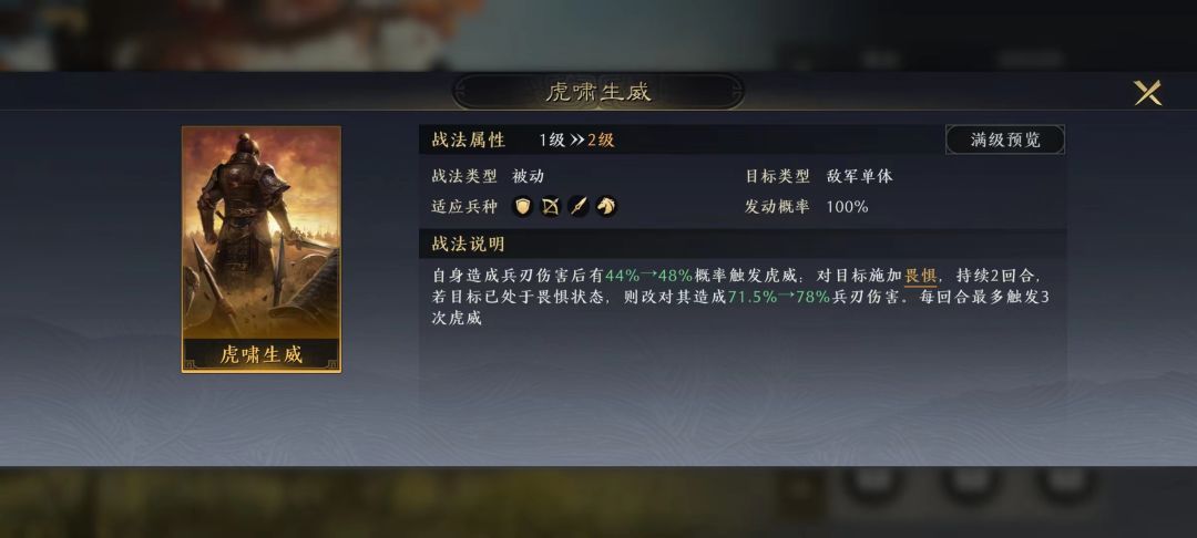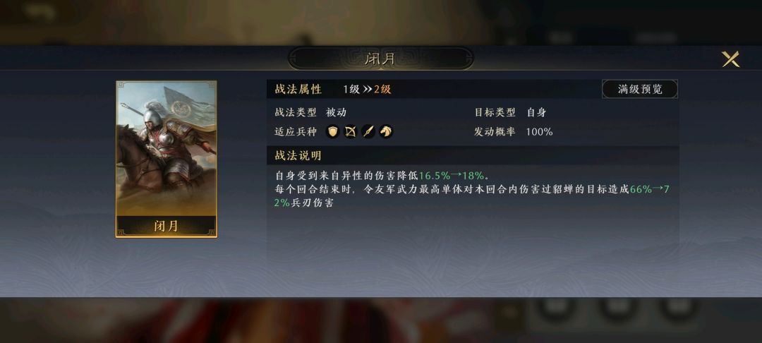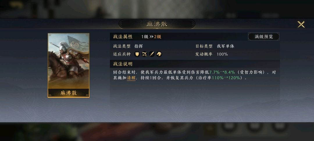 3、适配战法较少,且战法不契合时战力显著降低的,降半梯度以示区别。