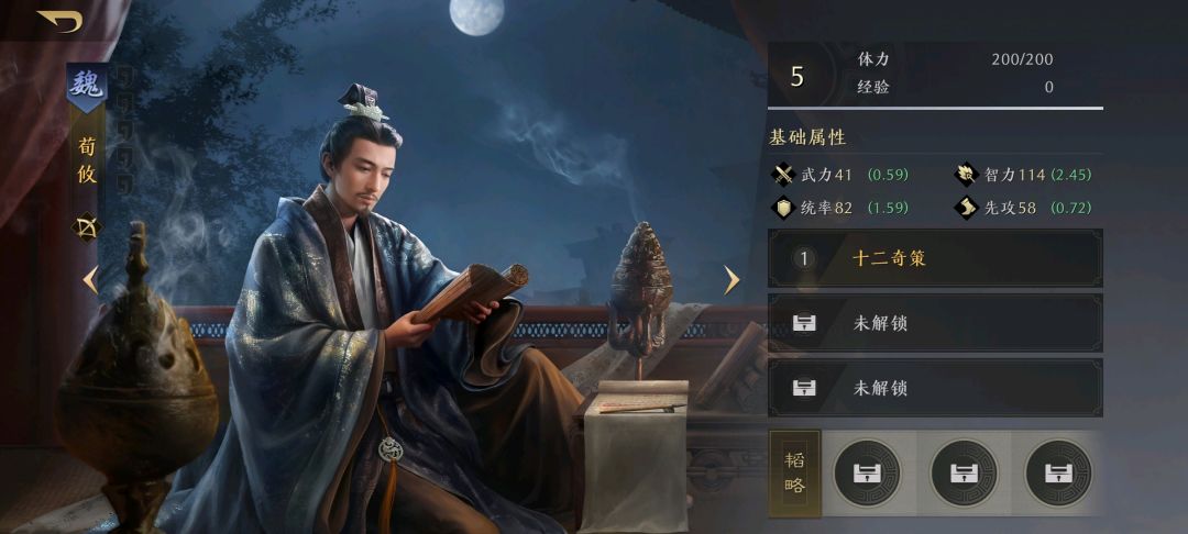 荀攸 T3 参照标准是徐庶,开荒和曹老板吃同样的亏。但是魏国+瞬发主动+智将,能沾唯二真神郭嘉的光,赢。