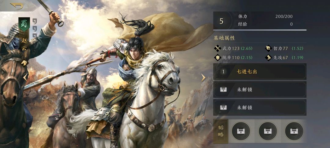 赵云 T4从技能上说,是蜀国少有的T位,但是吧,一方面,和曹老板问题相似,规避在开荒时远不如回血或典韦的反击,甚至不如加法累计的减伤。另一方面,这游戏2➕1就可以全队吃加成了,而且最离谱的是,强度超标的丞相甚至能稳稳从子龙手里抢走T位。