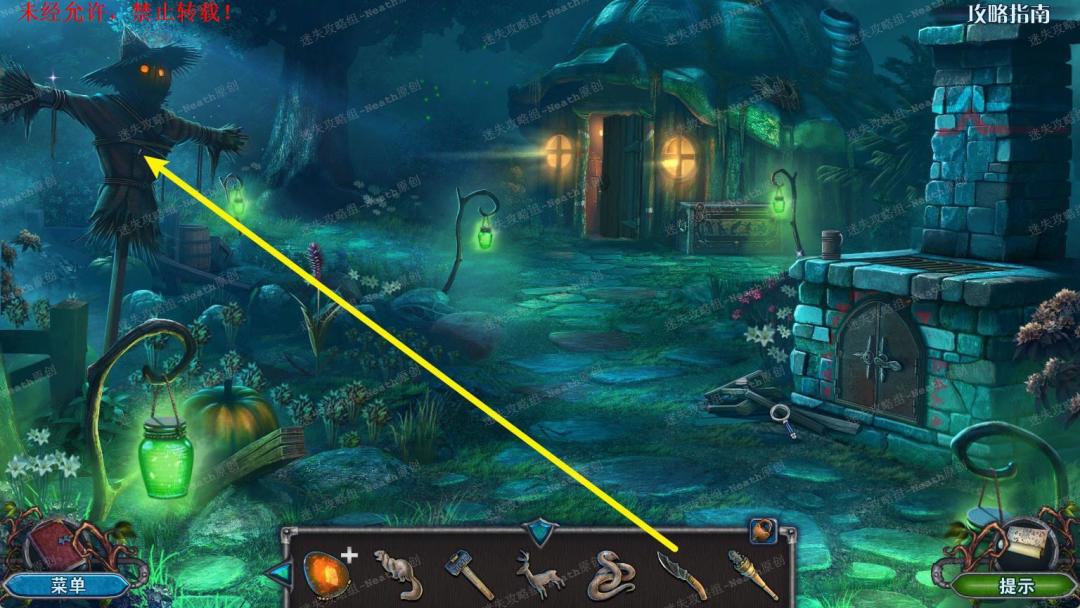40、回到德鲁伊的院子,使用【刀】划开稻草人,拿走【猫头鹰雕像】。40