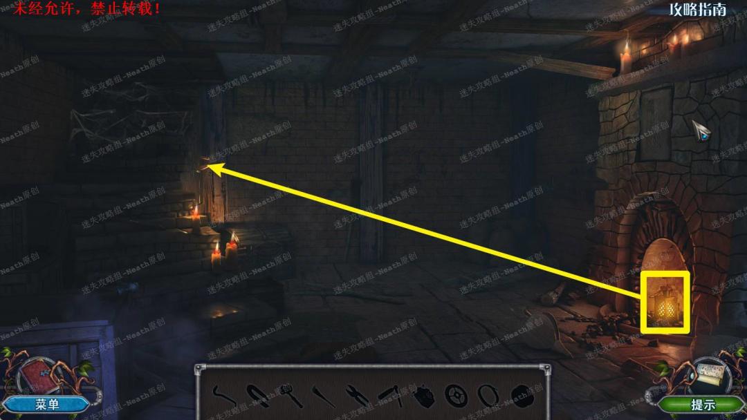 235、来到城墙,进入商人帐篷,拿走凳子上的【匕首】,割开布上被缝住的地方,得到地图,捡起【火把】在蜡烛上点燃,拿走玉米堆后面的【长柄钩】。235 235.1