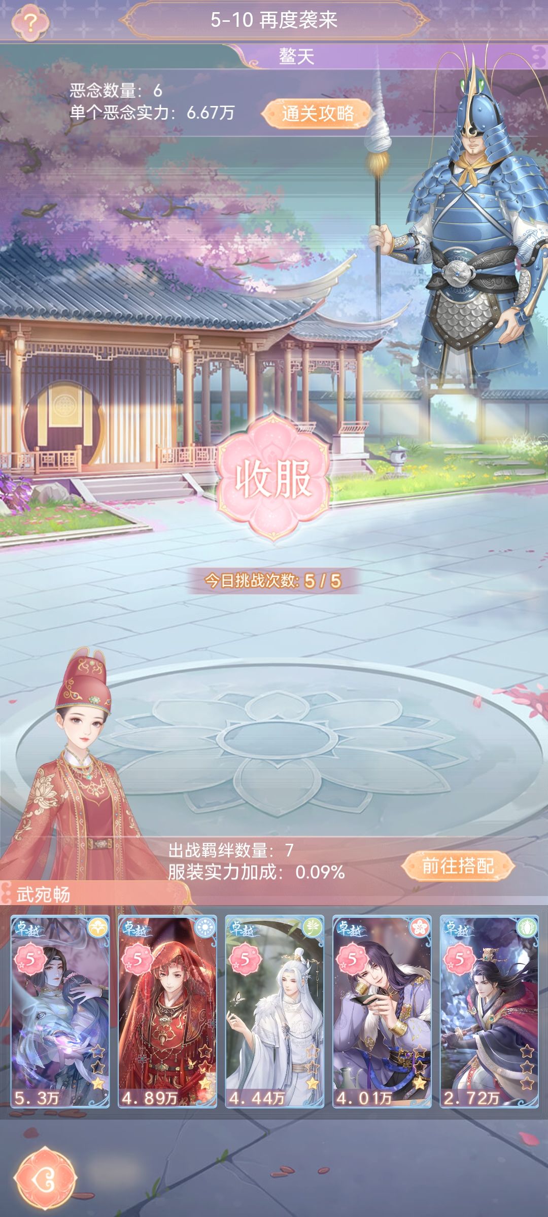 进入羁绊对决,我们将通过羁绊卡和鳌天的恶念进行对战。鳌天的恶念的实力平均达到了66700。我们先提升装备加成,本次的装扮要求依旧是洋气、异域、绛裳三个TAG,在提升完服装的实力加成后。我们将羁绊卡进行实力提升,3张达到66700即可战胜鳌天。