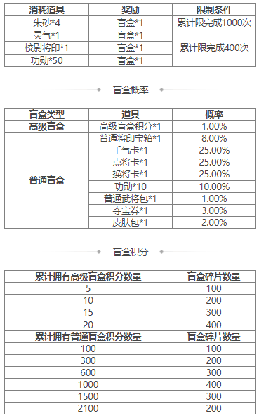 3、盲盒积分只做计数,2023-8-5 00:00:00到期,到期自动删除不回收。