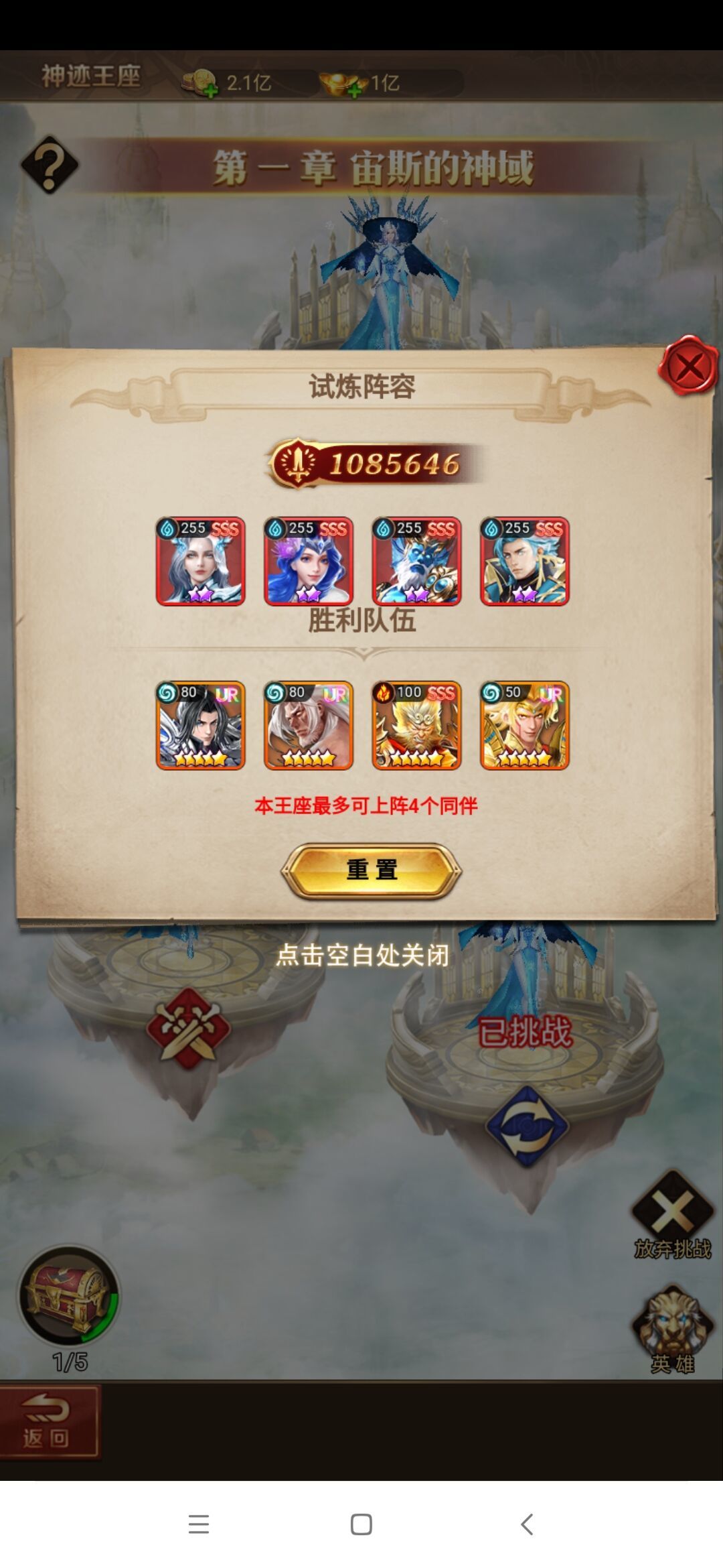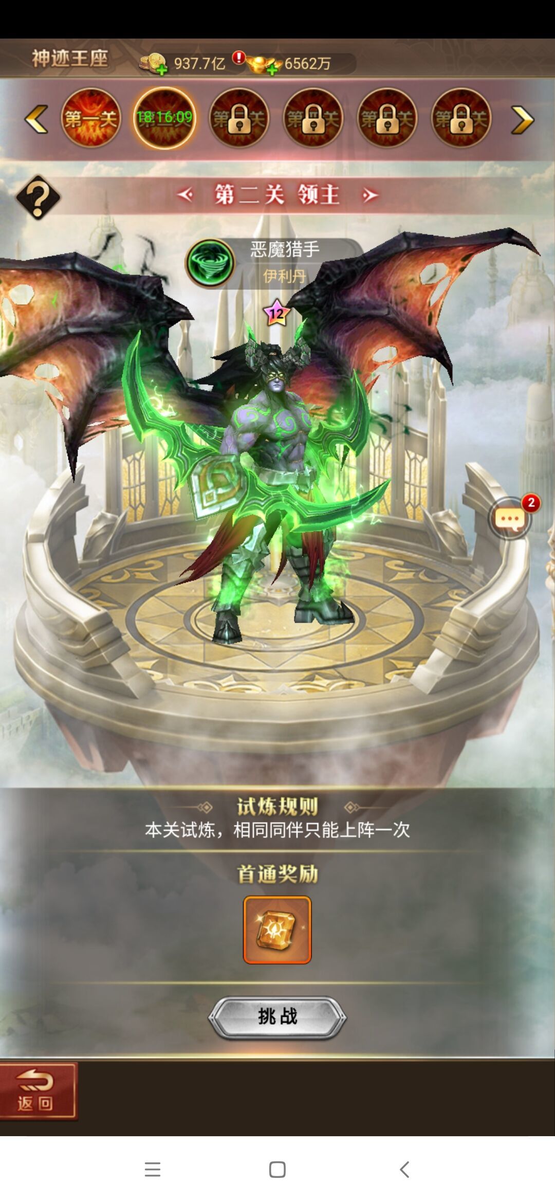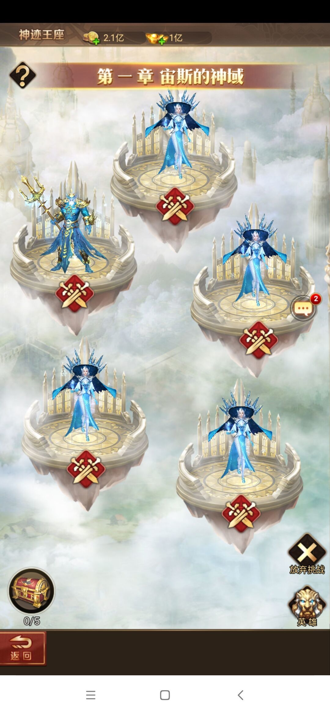 在神迹王座玩法中,大大们可以挑战多个章节