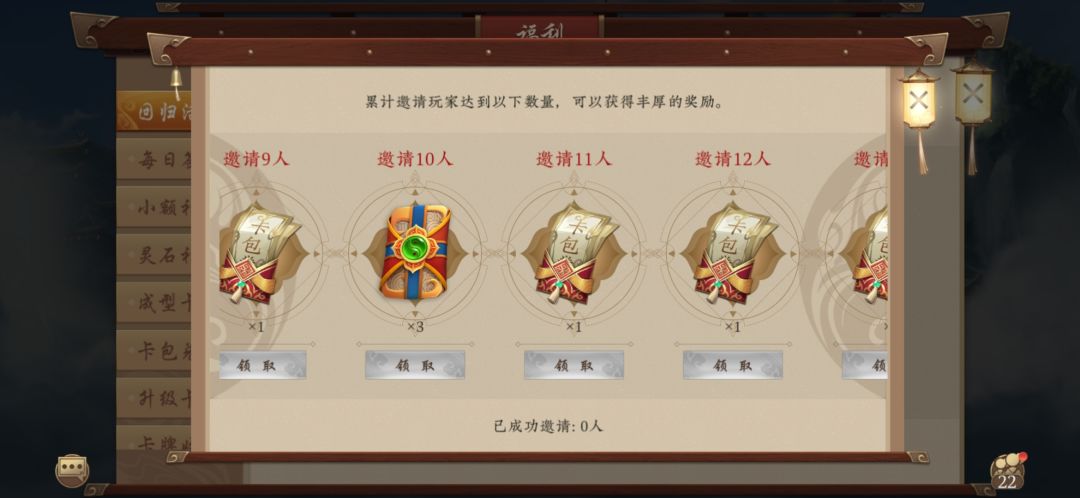 活动的福利共有15档,即邀请15人即可拿到所有奖励。如图三到六所示。总共可以拿到10卡包,10天卡包和200龙珠。
