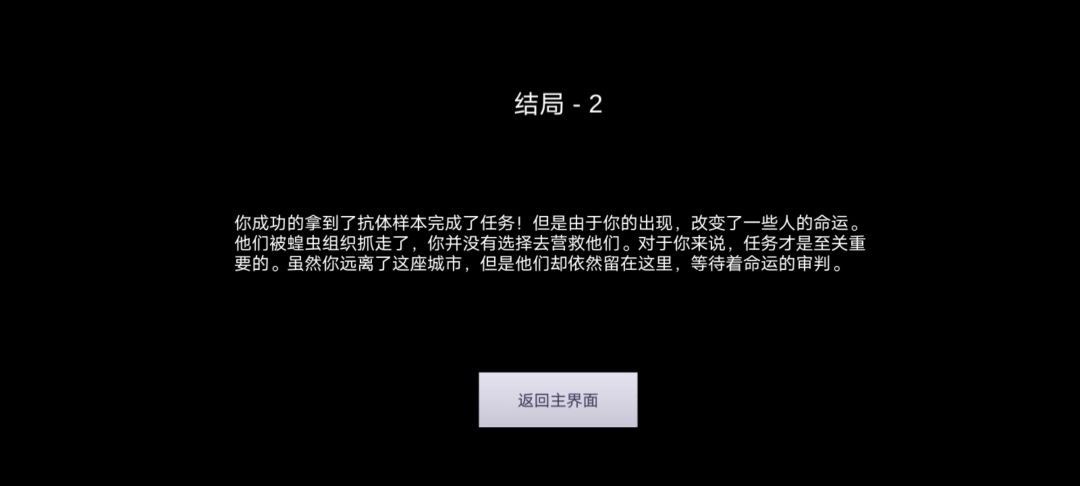 我这我这里假设两个可能,第一个可能就是之前有人说过结局1和结局2是随机给的,我试了几遍动画结束之后还是结局2,而且关于游戏结局不可能是那么草率所以这个假设不成立