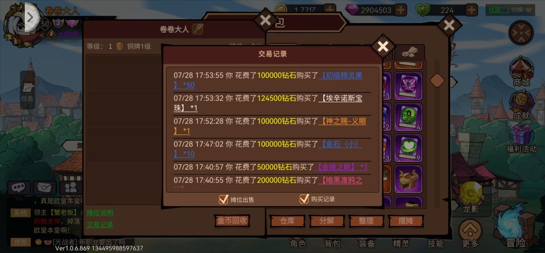 事件:伍拾玖和卷卷大人说关于新职业的事,伍拾玖觉得新职业一定可以买转职卡转职,卷卷大人说可能不会。伍拾玖就说有脑子的从公告一定推论出新职业可以转职,语气很冲。卷卷大人不置可否,觉得都有可能。于是伍拾玖说卷卷大人是矿工,穿50的破烂,要用钱砸死卷卷大人,于是卷卷大人接招了,好戏开场。