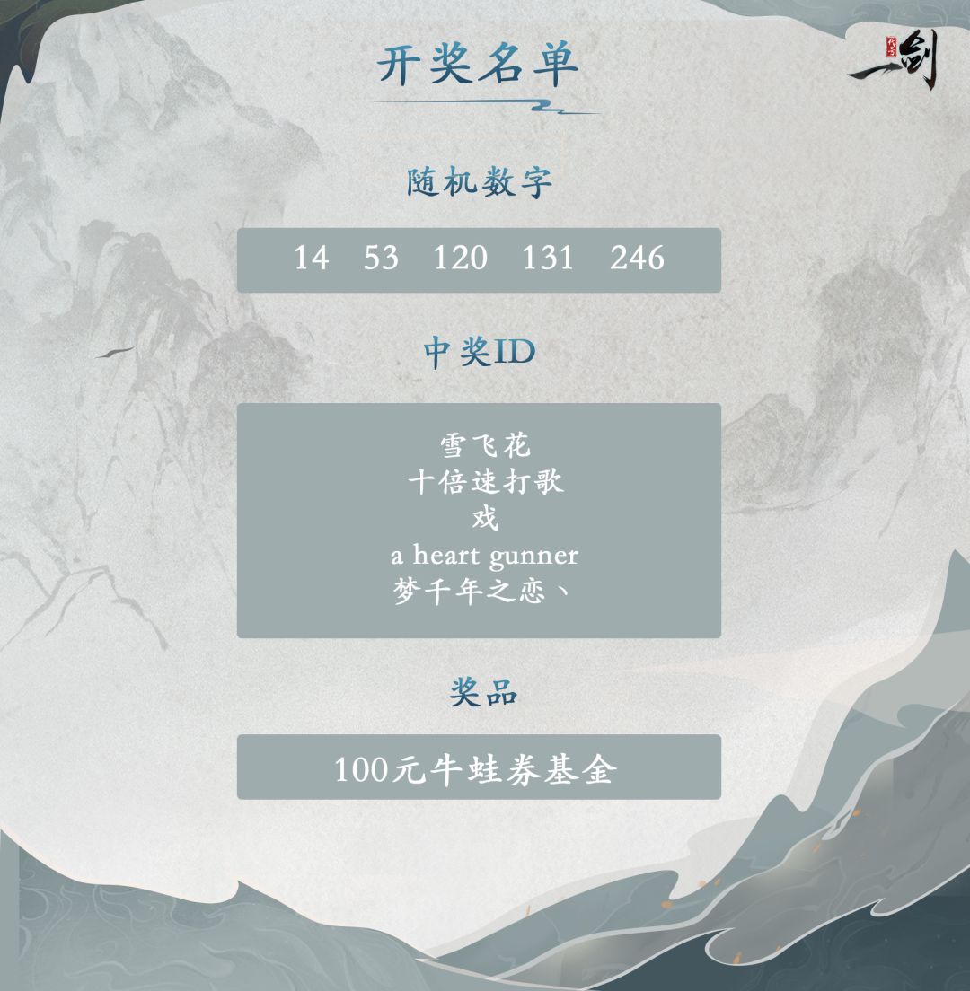 本期活动获奖名单已出炉。截止活动结束,共有261楼,随机生成5个楼层为:14/53/120/131/246。