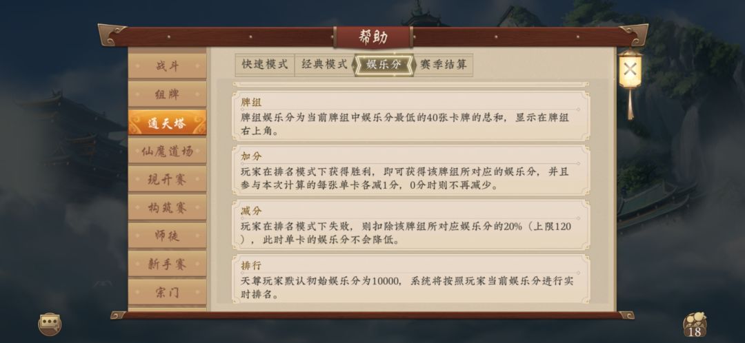 3、当玩家到达天尊级别,开启娱乐分模式。初始为1万分。