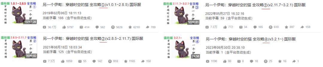 由于当时B站调整了视频分P规则,一个视频最多200P,所以我建了一个新视频。从2部结篇到未来外典后日谈完结。22年1月末之后都是1080P,之前有画面撕裂,卡顿等情况。