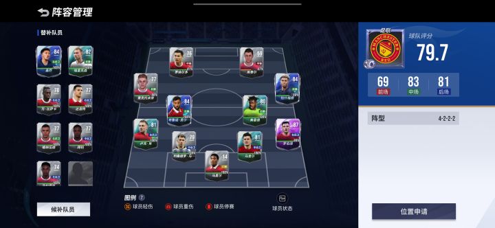 1:可以申请球员阵容,像生涯模式中申请位置一样,这样可以调节球员阵容和阵型