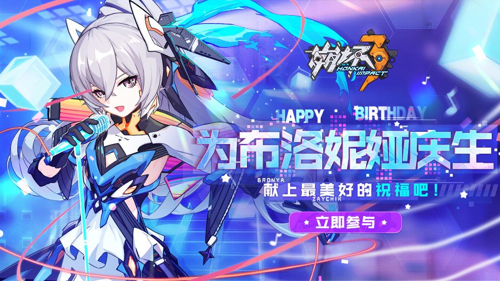 请舰长前往《崩坏3》游戏内聊天室任意频道,为布洛妮娅送上生日祝福!
