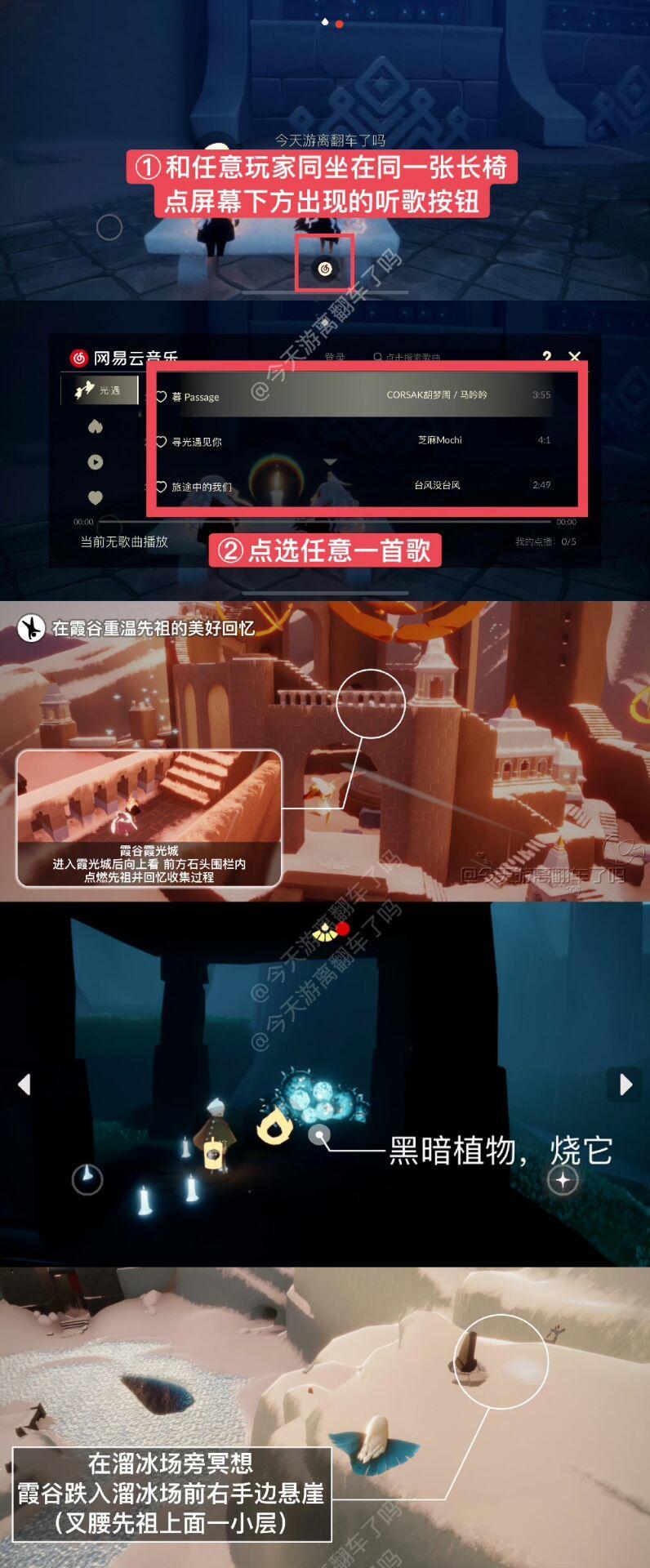 「与一名玩家在长椅上听歌」和好友过陌生人坐在同一张长凳上,点击屏幕下方出现的听歌按钮,然后点选任意一首歌即可(不需要设备有网易云,游戏里就能听)