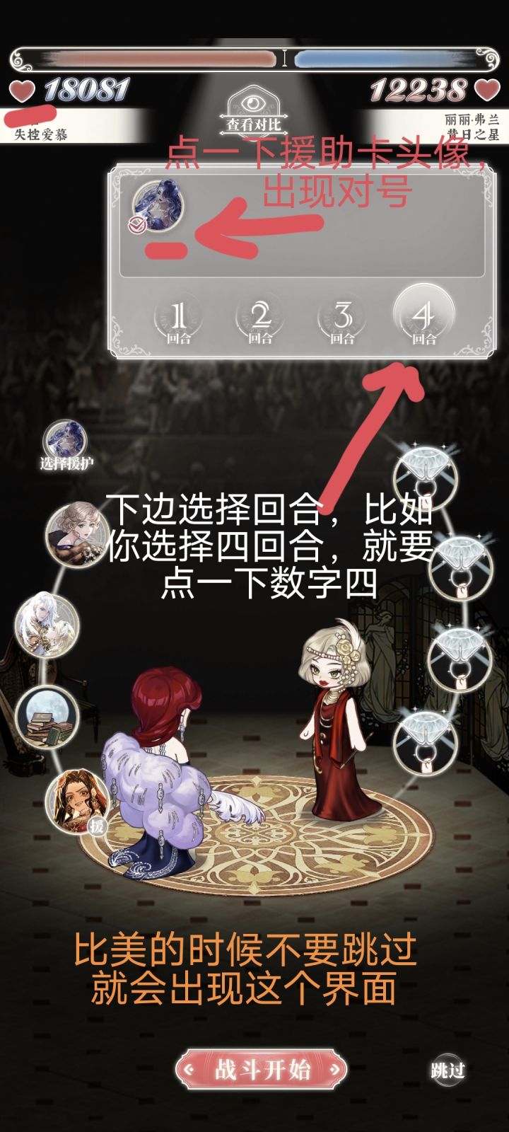 注意!!!!红女王和援助星月都放在最后一回合,这个配置主要是用星月提升攻击卡的暴击率红女王也可以用别的伤害卡代替,只要那个卡的伤害够。
