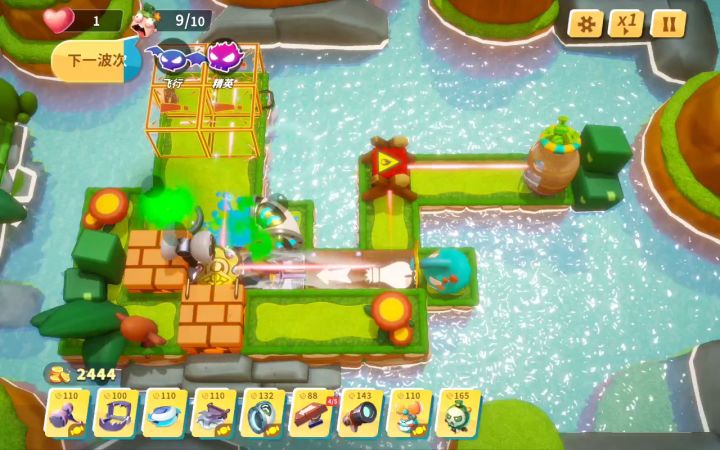 第3—10波:挂机,微调板子位置,用自动攻击刮飞漏掉的飞行单位。