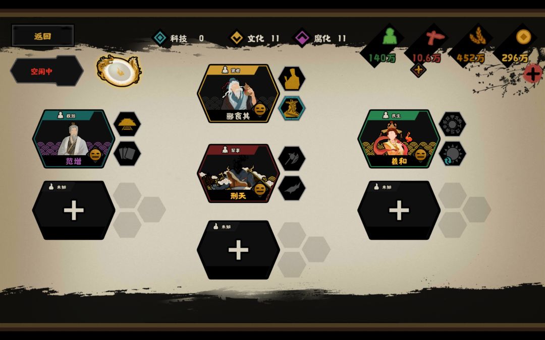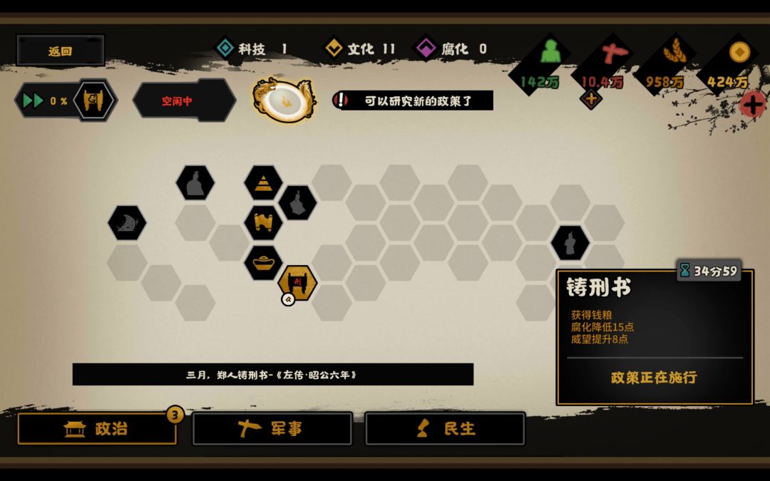 (2)五星,政策事件加威望,两臣服
