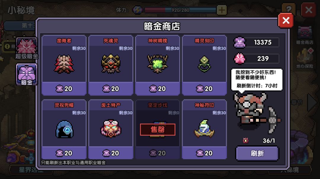 每有10废铁残晶我们就可以打一次暗金矿洞(在地心探险)