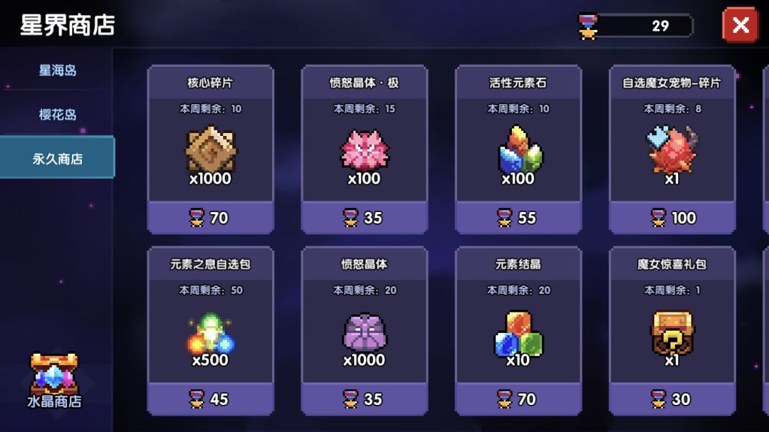 这种获取方式就是通过打星界远征(团本)啦,打团本可以让我们快速获得愤怒晶体的兑换每周可以换1500愤怒晶体极,以及20000的愤怒晶体,以及我们星界远征的魔女惊喜礼包,这个最推荐大家每周拉满呢