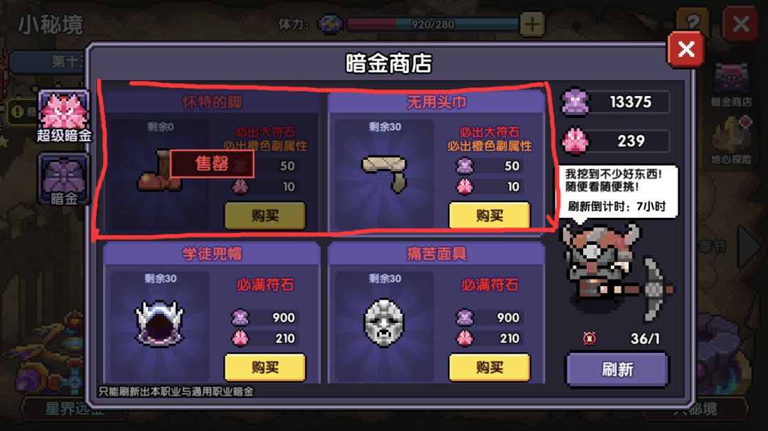 刷完了水晶房和暗金矿洞我们开始有了愤怒晶体和愤怒晶体.极,可以在我们的暗金商店进行消费买暗金装备