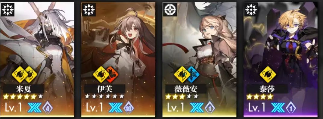 推荐输出2人: 伊芙、米夏、镇灵座、索尔拉德(雷属性狙手)、薇薇安(水、雷属性、启光联盟增攻击&雷属性狙手)、卡夫卡(雷属性狙手)、其他高练度输出