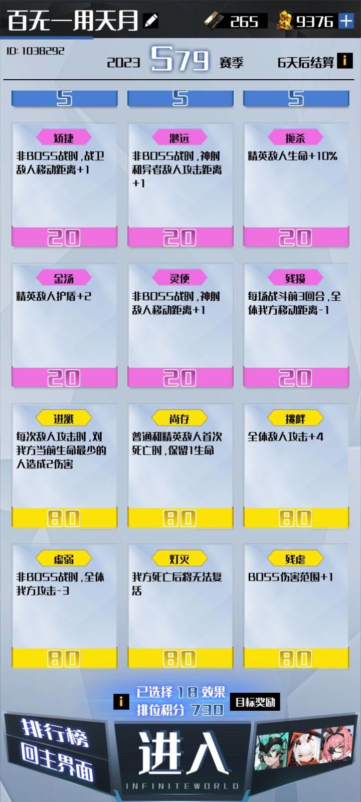 排位特点:敌方高伤,敌方综合BUFF叠加(攻击,攻击距离,移动,护盾,血量)