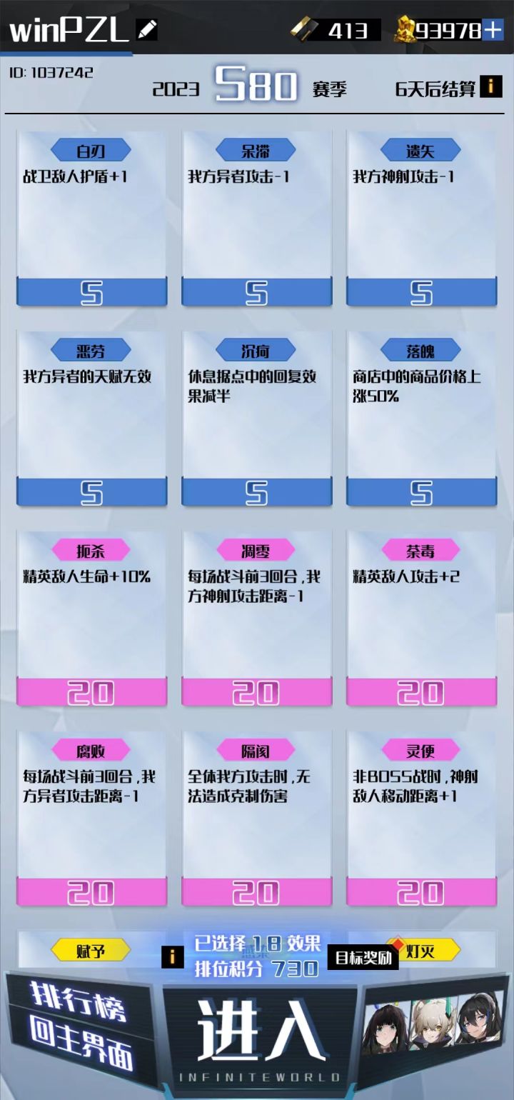 特点:蓝色、紫色词条较友好,异者朱莉安娜被严重针对,敌方(高)我方血量(低),我方不能复活(灯灭),金色加成少(水逆)