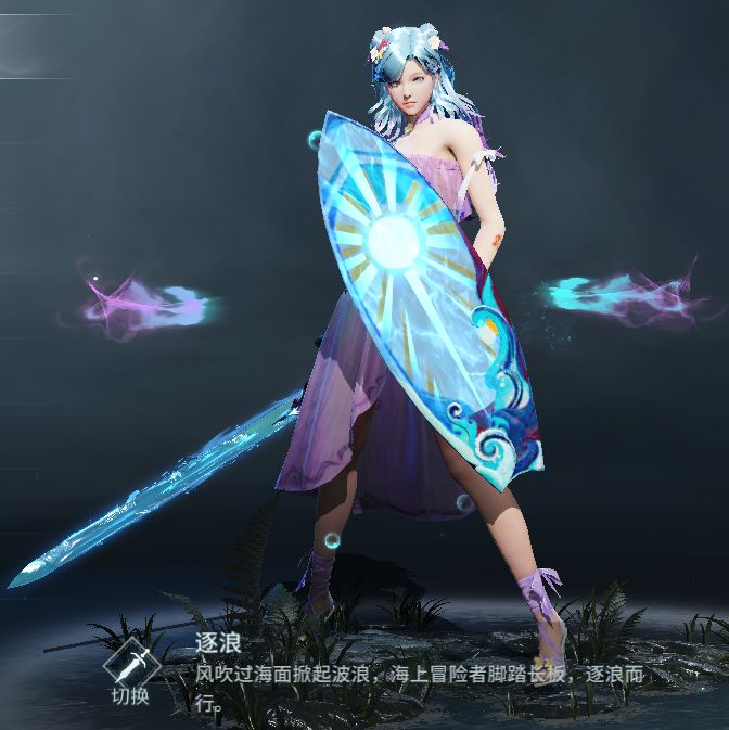 网上冲浪靠键盘,战场冲浪用剑盾!这次剑盾的新皮肤——逐浪创新性地引入了冲浪板作为盾牌的造型,配以阳光、海浪的纹饰,助力各位猎手在战场愉快冲浪。长剑则加入了大量的水花特效,在一挥一刺间,水花四溅。想不想在战场上打水仗啊?那就快来PICK它吧!