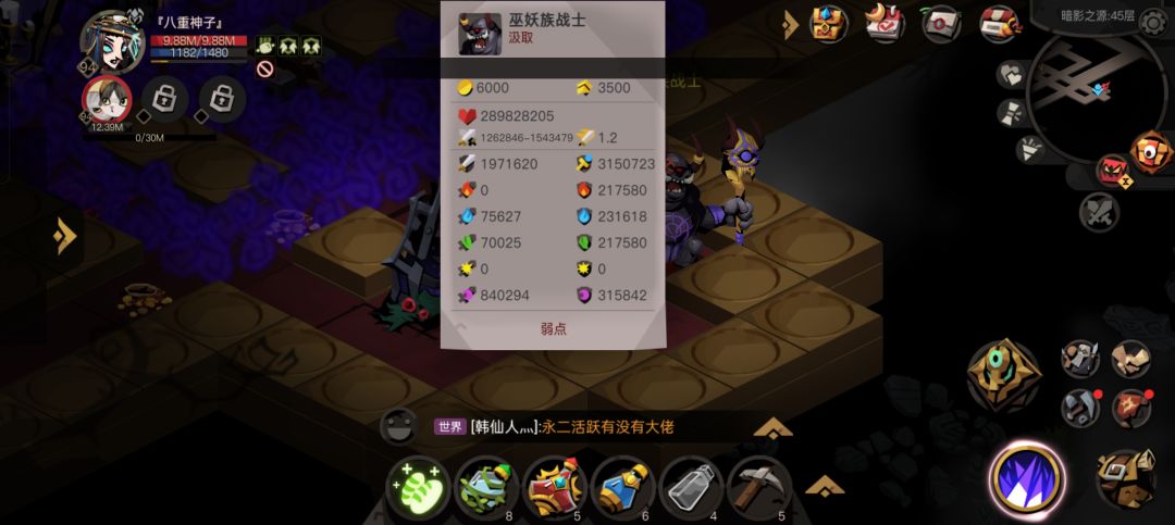 第五层,巫妖族战士,他有一下高伤,并且有一堆负面buff,还有流血Buff,还有标记负面,不知道引爆会咋样,并且有反弹伤害![[TapFamily_寄]](https://img.tapimg.com/market/images/ccc3dbd39840eee5865336d2f435ed85.gif)