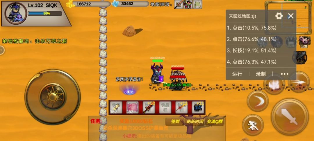 我这里选择的是沙漠遗迹2图和沙漠遗迹1图,来回跑,这2地图里出口很近