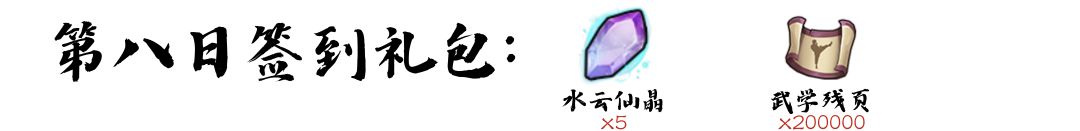 2、累计7天签到:普通月卡*1、水云仙晶*5、精美赏赐箱*2
