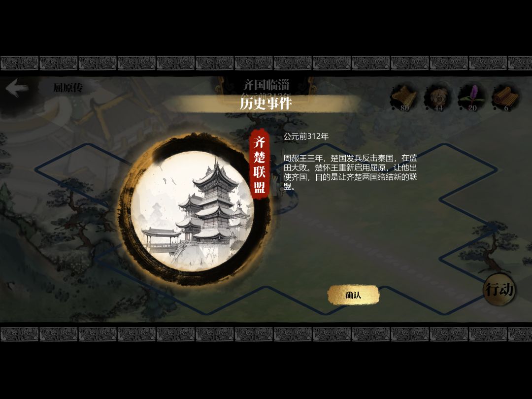 与“田辟彊”对话,触发历史事件“齐楚联盟”;