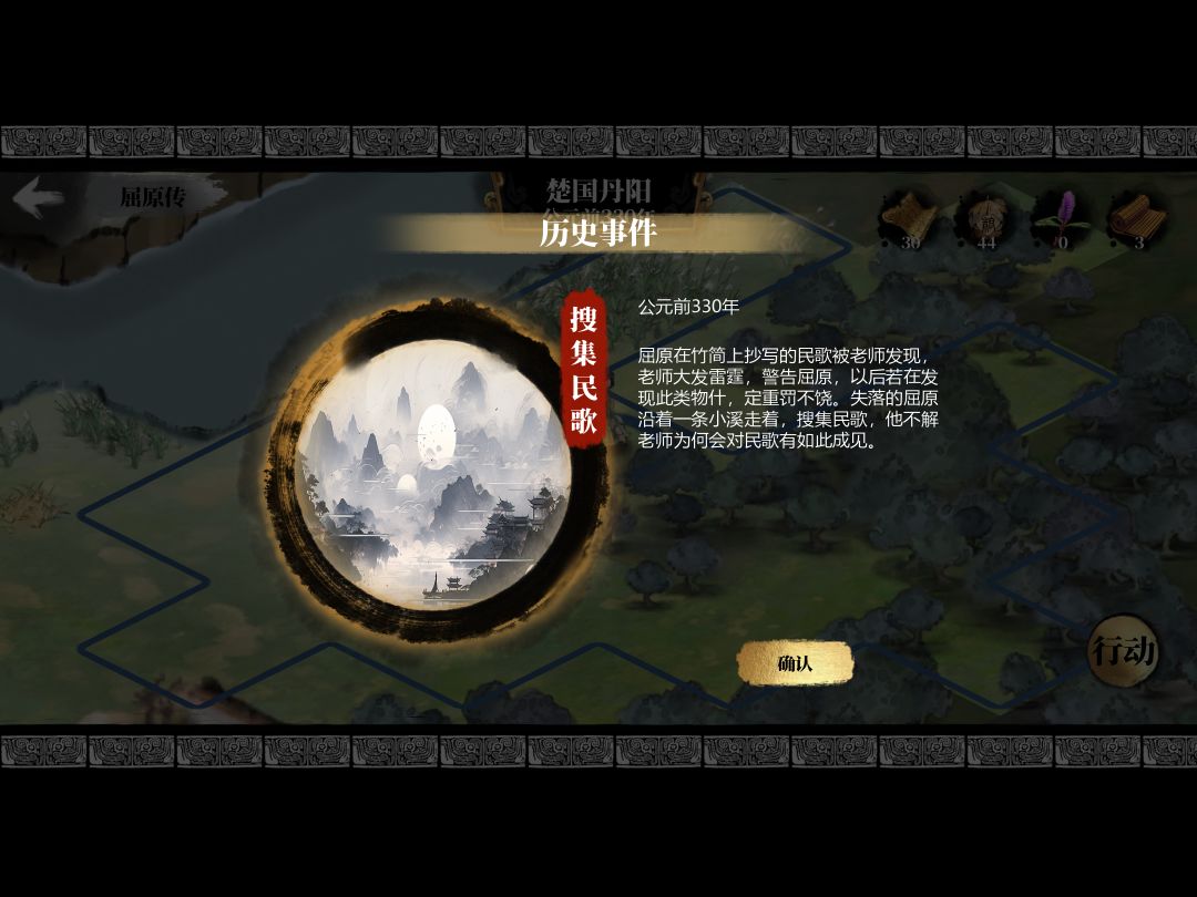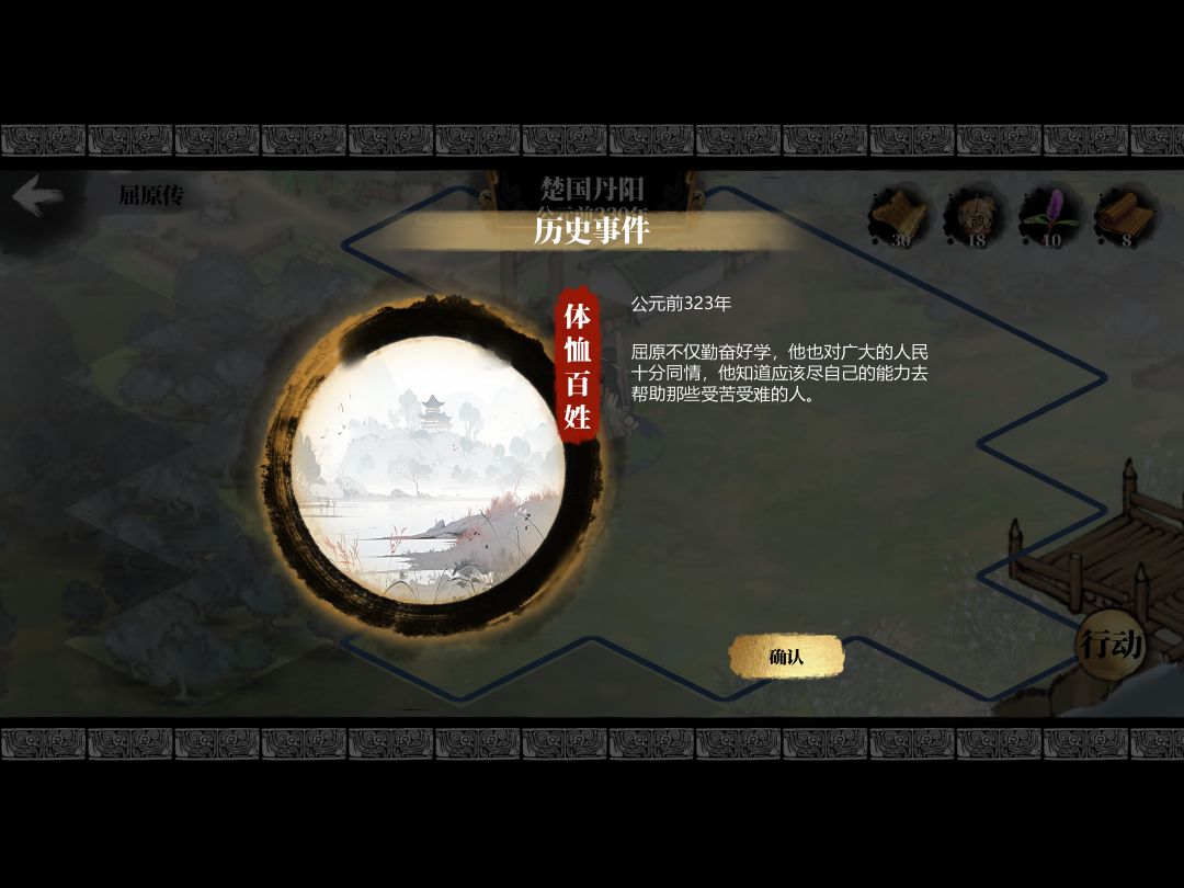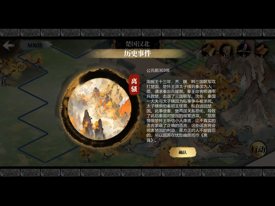 与“农妇”对话,消耗20芳草,触发历史事件“离骚”;