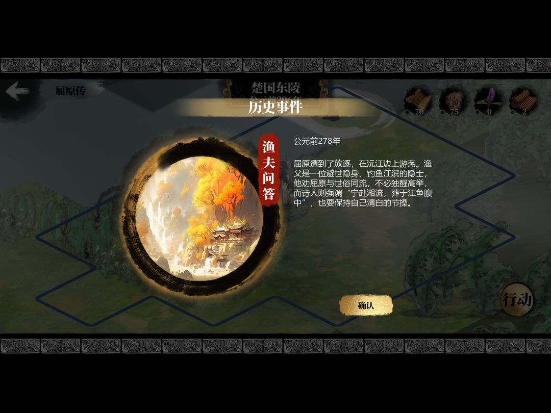 与“渔夫”对话,触发历史事件“渔夫问答”,触发历史事件“悠悠汨罗”;