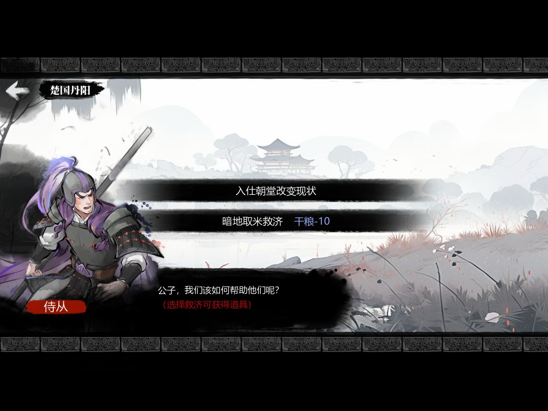 与“贫农”对话,选择“暗地取米救济”,获得“芳草+10”,触发历史事件“体恤百姓”;
