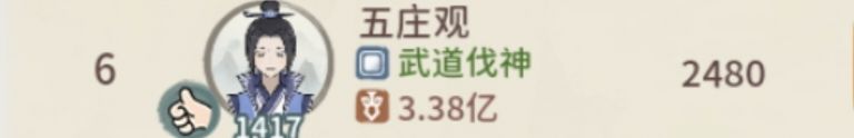 跨服第六:五庄观,36-45强者,新区霸主,论剑历史上唯一做到连任两届跨服第一的强者,可惜本届跨服心生退意,全程摆烂,依旧登上跨服第六,足可见得其冠绝群雄的实力,一身转战三千里,一剑曾当百万师!